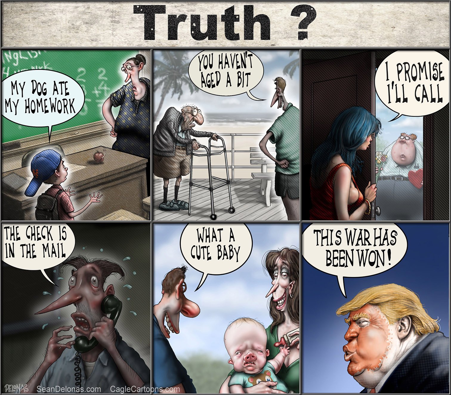 I believe nothing Trump says. He’s a pathological liar. This week I made two other cartoons, but they were so poor I decided not to post them. I’ve used this cartoon concept multiple times before. Is my age causing me to struggle with idea generation? Probably.
